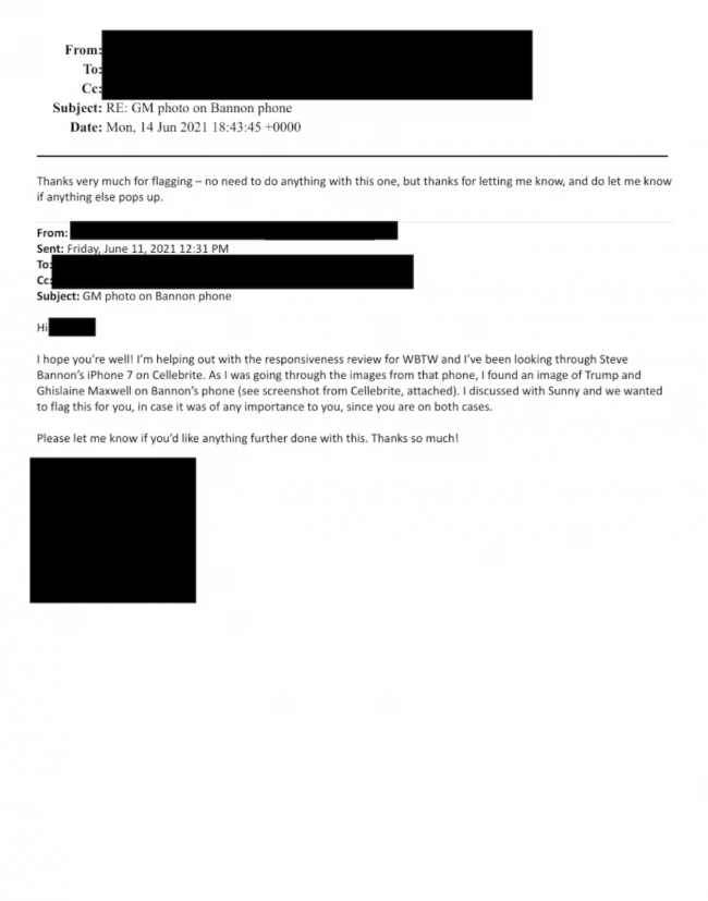 Sähköpostiviestissä, päivätty 7. tammikuuta 2020, siteerataan lentotietoja, jotka osoittavat Trumpin olleen Epsteinin koneessa useaan otteeseen, mukaan lukien ainakin neljä lentoa Epsteinin yhteistyökumppanin Ghislaine Maxwellin kanssa, joka istuu 20 vuoden vankilatuomiota siitä, että hän auttoi Epsteinia käyttämään hyväksi alaikäisiä tyttöjä.