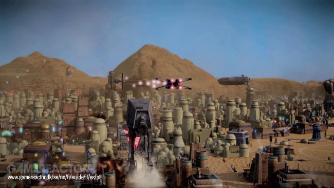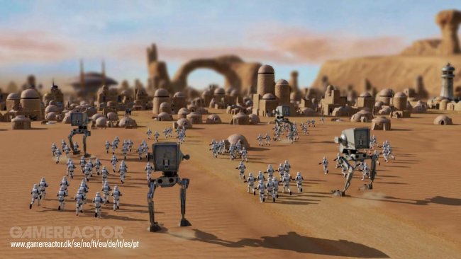 Kuvissa näkyy aavikkoplaneetta, joka on toedennäköisesti Tatooine ja klassista kuvaistoa stormtroopereiden, Luke Skywalkerin, AT-ST:n ja Millenium Falcon kera.