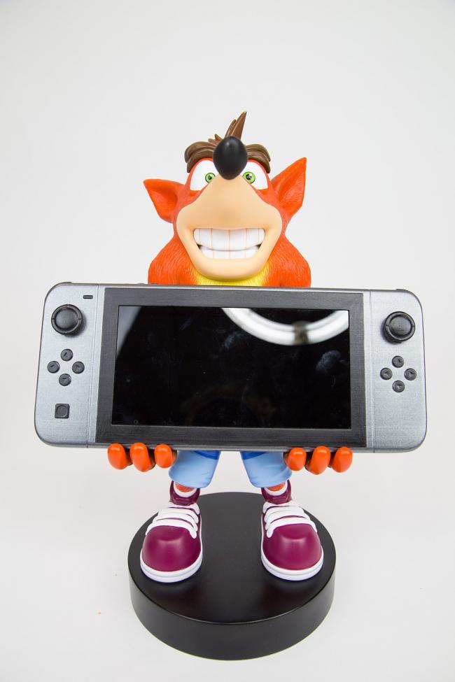 Nintendo Switch ei ole painava laite, mutta silti sitä voi pidellä tyylillä. Crash Bandicoot näyttää, miten se tehdään. 30 cm korkea patsas pitää Nintendo Switchin tiukassa otteessa näyttäen samalla hyvältä. Tietysti Crashin pideltäväksi voi antaa myös älylaitteen tai peliohjaimen.