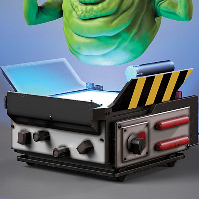 "Officially licensed, this sculptural Slimer is authentically detailed to bring his blobby form to life. Handcrafted of vinyl and expertly hand-painted, the vivid green Slimer is a delightful fright - from his huge mouth to his tiny hands! Hidden electromagnets help Slimer float and spin above the Ghost Trap base. The Ghost Trap is hand-painted with authentic details like yellow and black caution stripes, buttons and levers, and doors you can open and close. And the trap lights up with built-in LEDs, as if ready to suck in this spooky specter."